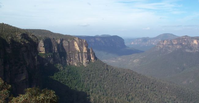 My first stop was at Wentworth falls, which gave some spectacular views of a high waterfall. From there, I went onto Sublime Point and then came into the town of Katoomba. The most famous sight there is of the Three Sisters, but at the time they were redeveloping the visitor's area. There was nowhere to park and the whole place looked like a building site, so I had a quick look out of the car window and continued on my way. I went through Katoomba and onto Evan's Lookout. After Evan's Lookout, I went to Govetts Leap which gave some more spectacular views of the wooded valley below. I was pleased to see that there was no evidence of the 2001 bush fires in the area, though 2002 is looking to be even worse.